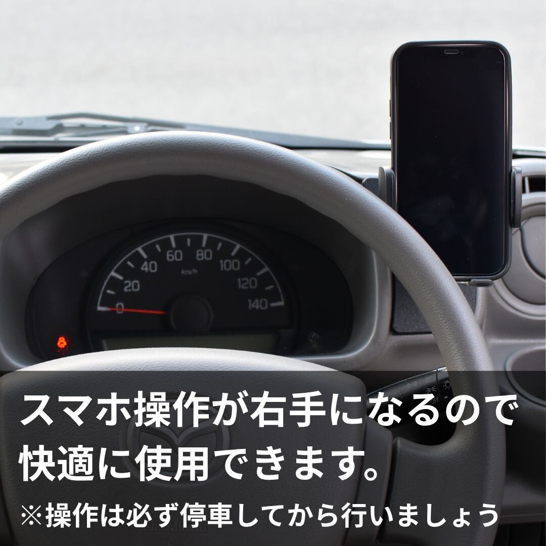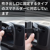 エアコンの吹き出し口に固定するタイプのスマホスタンドに対応しております。
